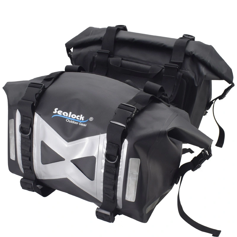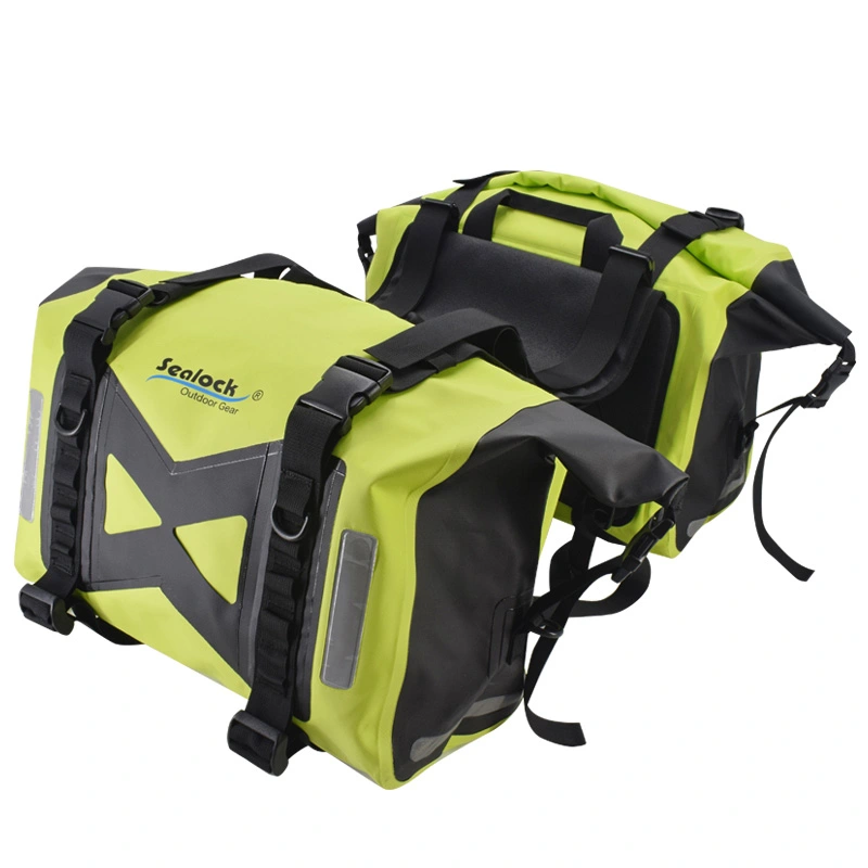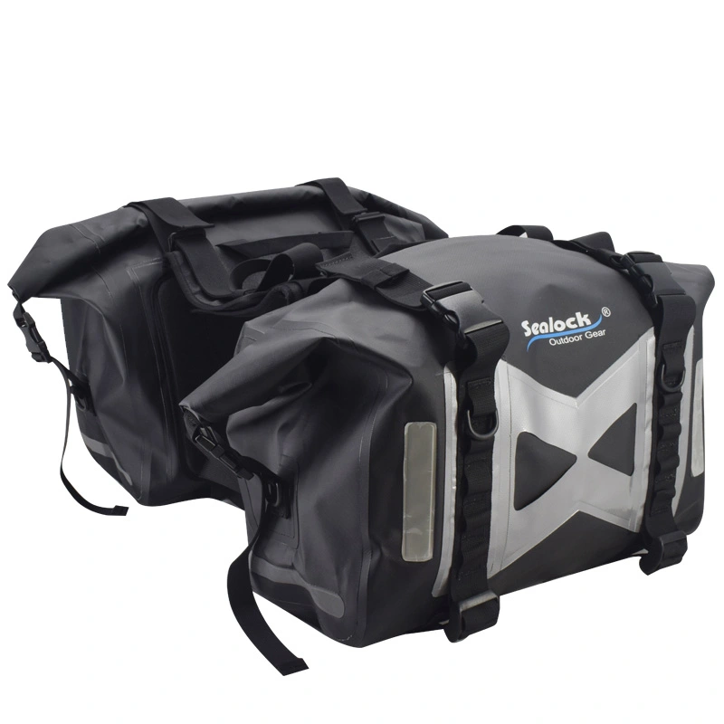 या 60L मोटरसायकल वॉटरप्रूफ सॅडलबॅग्जची दोन्ही बाजूंनी डिटेचेबल क्षमता 50kg आहे आणि ती हेल्मेट, पाण्याच्या बाटल्या, कपडे, कॅम्पिंग उपकरणे आणि बरेच काही ठेवू शकते. मोटारसायकल वॉटरप्रूफ सॅडलबॅग्ज, वॉटरप्रूफ, डस्टप्रूफ आणि वेदरप्रूफ, मजबूत आणि टिकाऊ पीव्हीसीपासून बनवलेल्या सामग्री, अखंडपणे वेल्डेड, 100% जलरोधक आणि स्वच्छ करणे सोपे. पाऊस आणि बर्फामुळे तुमचे सामान ओले होण्याची काळजी करू नका. जर तुम्ही लांब पल्ल्याचा प्रवास करणार असाल, तर आमची सीलॉक वॉटरप्रूफ बॅग मटेरियल तुमच्या प्रवासाच्या वस्तू सुरक्षित करण्यासाठी अधिक टिकाऊ आहे. रात्रीची दृश्यमानता सुधारण्यासाठी दोन्ही बाजूंना रिफ्लेक्टीव्ह लोगो जोडले आहेत. हे सुरक्षित सवारीसाठी अधिक अनुकूल आहे.