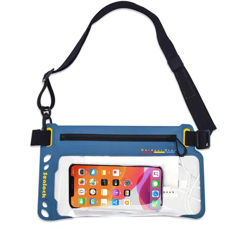 साहित्य: पाउच टिकाऊ आणि उच्च-गुणवत्तेच्या सामग्रीपासून बनविलेले असावे जे पाण्याच्या संपर्कात आणि संभाव्य झीज सहन करू शकते. TPU (थर्मोप्लास्टिक पॉलीयुरेथेन) ही एक सामान्य सामग्री आहे जी जलरोधक पाउचसाठी वापरली जाते.