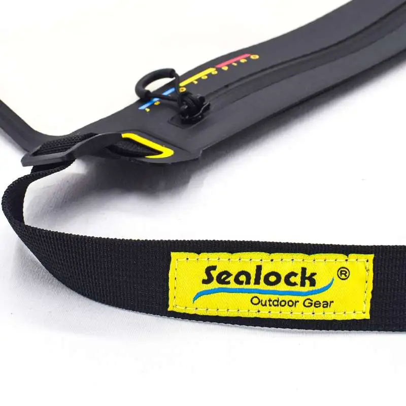 पट्टा किंवा डोरी: विलग करण्यायोग्य पट्टा किंवा डोरी तुमच्या मनगटावर पाऊच सुरक्षित ठेवण्यासाठी किंवा ते तुमच्या स्विमवेअरला जोडण्यासाठी उपयुक्त ठरू शकते. हे पोहताना अपघाती थेंब किंवा नुकसान टाळते.