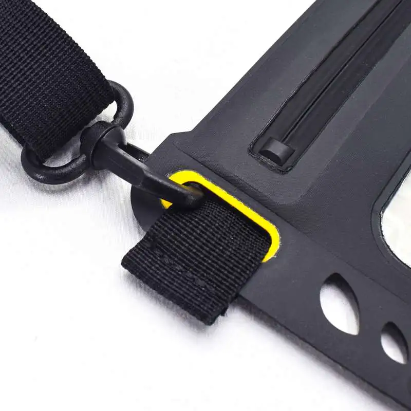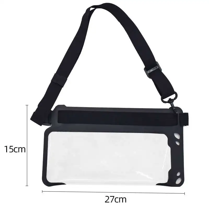 जलरोधक रेटिंग: उच्च जलरोधक रेटिंग असलेले पाउच पहा, सहसा IPX (इनग्रेस प्रोटेक्शन) मानकांमध्ये मोजले जाते. IPX रेटिंग जितके जास्त असेल तितके जास्त पाणी-प्रतिरोधक पाउच असेल. पोहण्यासाठी, तुम्हाला उच्च IPX रेटिंग असलेले पाउच हवे आहे, जसे की IPX8, म्हणजे ते एक मीटर खोलीपेक्षा जास्त पाण्यात बुडवले जाऊ शकते.